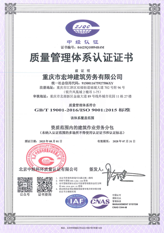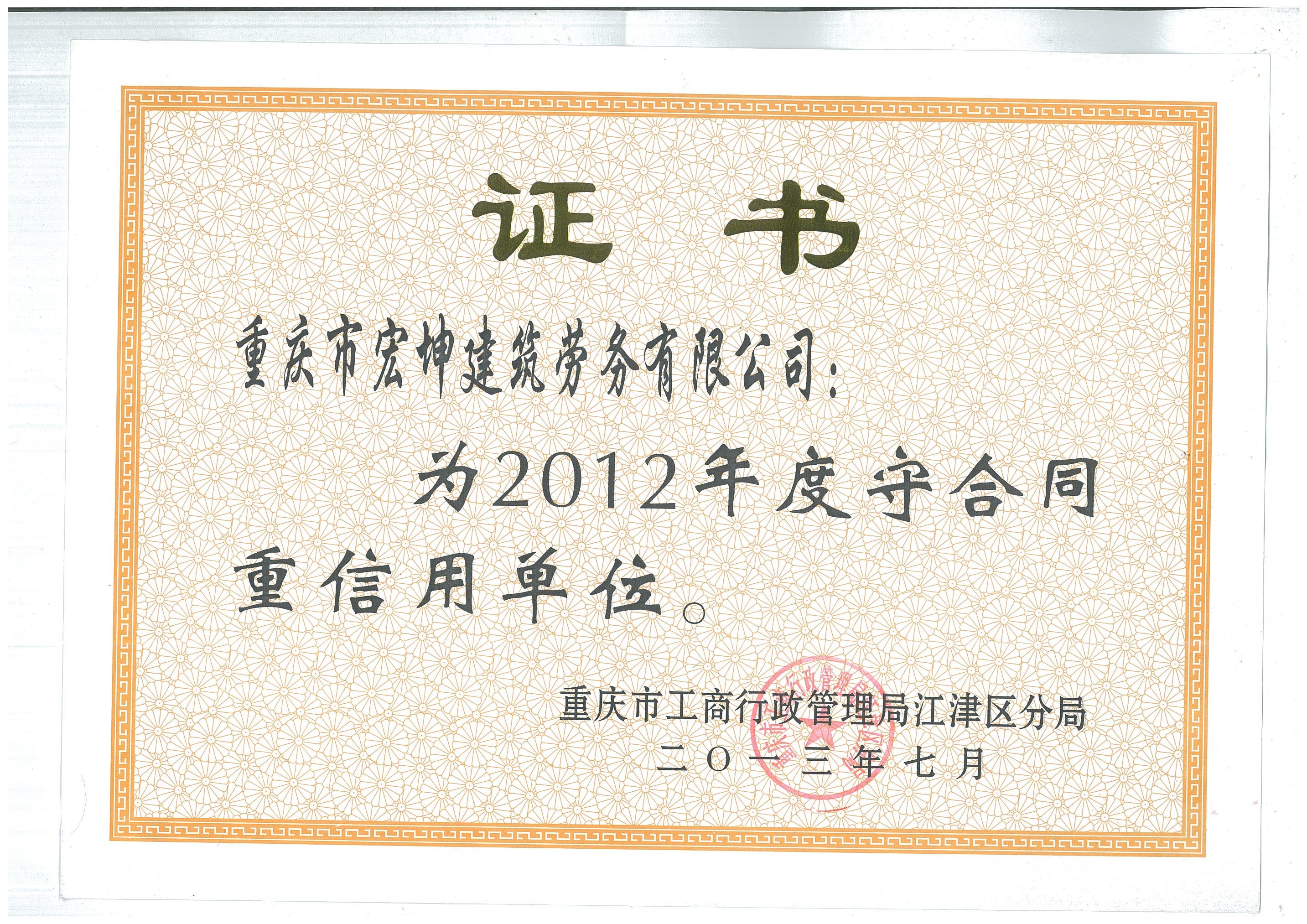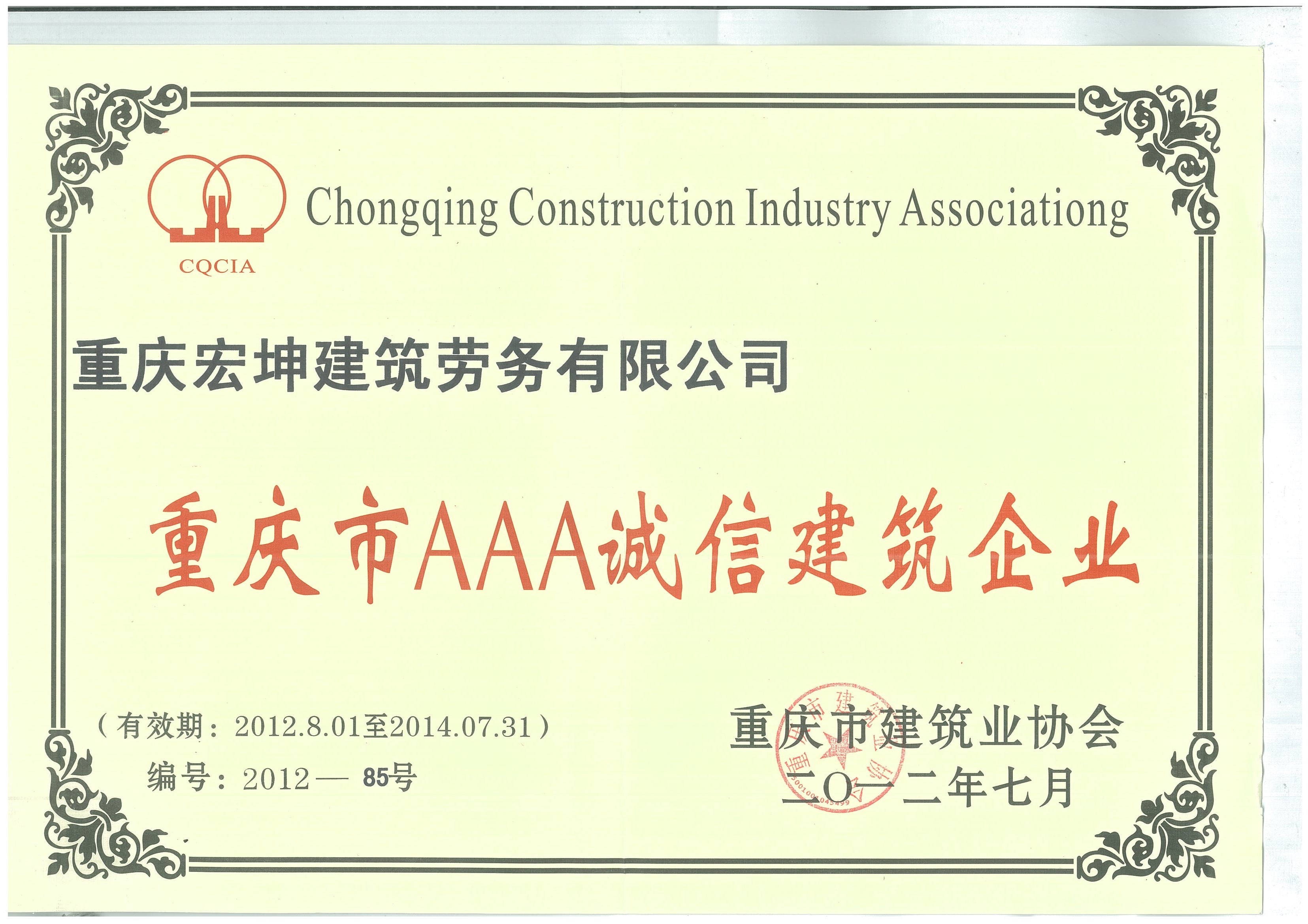 經過多年奮斗,公司先后被評為重慶市建筑業先進企業、重慶市AAA誠信建筑企業以及全國優秀建筑勞務企業